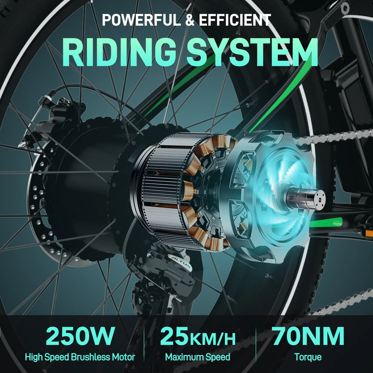Powerful 250W Motor with 70Nm Torque for Confident Riding