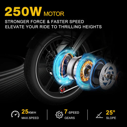 The HITWAY BK36 electric bike is equipped with a 250W motor that generates an impressive 60Nm of torque, delivering strong power for quick acceleration and smooth hill climbs. Experience robust performance and confident riding on various terrains.